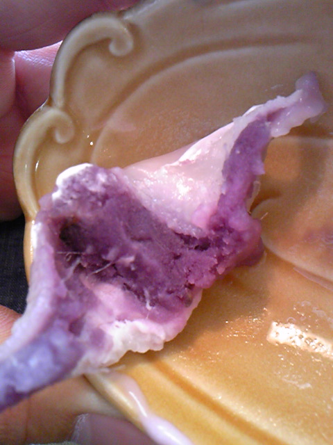写真の白玉団子の餡は紫いもが原料です。