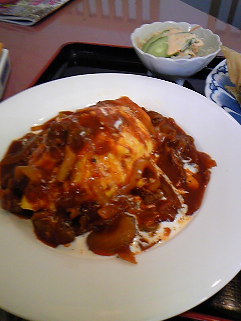 オムハヤシと春巻きの中にひき肉と卵の入ったヤツ(何てネーミングになるのでしょう)