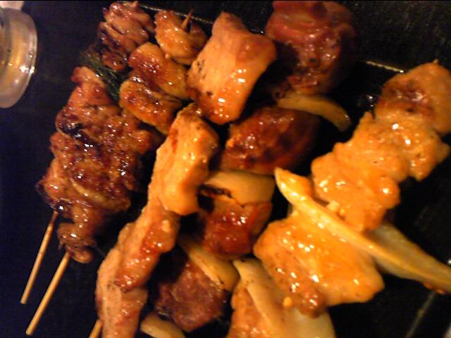 焼き鳥、ユッケ、をツマミにビールが進みます。