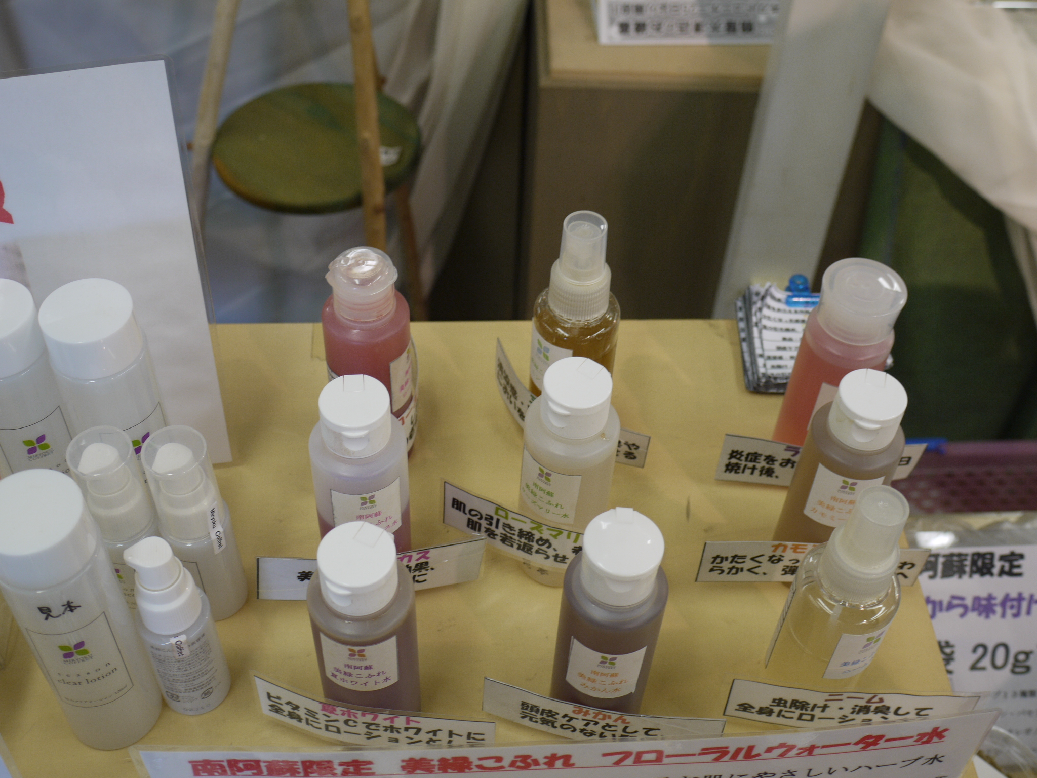2011年07月17日 開催中です。 こんにちは、今日も暑くなりそうです。台風の経路が気になりますが、ちょっと、時間が空いたので更新です。人吉球磨焼酎の試飲販売会。物産館で開催中です。最近の芋焼酎はフルーティーな味です。一度ご賞味下さい。南阿蘇のハーブ水・石鹸の販売会も開催してます。天然素材で作られた体に優しいハーブ水です。(飲み物では有りません)ど〜ぞ、宜しくお願いいたします。 タグ :#道の駅#スタンプラリー#ハーブ水 カテゴリなしの他の記事 < 前の記事次の記事 > コメント このブログにコメントするにはログインが必要です。 さんログアウト この記事には許可ユーザしかコメントができません。 コメントフォーム 名前 コメント 評価する リセット リセット 顔 星 投稿する 情報を記憶 トラックバック