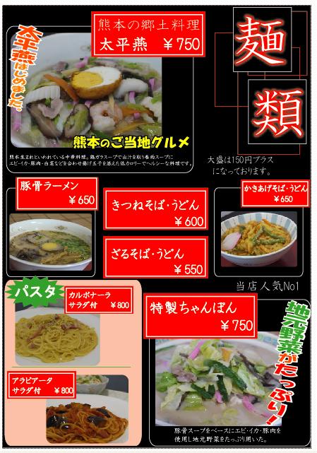 2012年11月03日 レストランのメニュー平成24年11月1日から レストランのメニュー表です。24年11月からグランドメニュー一新しました!!ご予約や旅路の予定にご利用下さい。なんと!熊本のヘルシーグルメ。太平燕(タイピーエン)750円も新しくメニューに加わりました。お問い合わせレストラン(ダイヤルイン)096-294-1839夜の宴会も可能です。お気軽にお問い合わせ下さい。 タグ :#タイピーエン#太平燕#レストラン#旅行#御飯#ランチ#熊本#宴会 カテゴリなしの他の記事 < 前の記事次の記事 > コメント このブログにコメントするにはログインが必要です。 さんログアウト この記事には許可ユーザしかコメントができません。 コメントフォーム 名前 コメント 評価する リセット リセット 顔 星 投稿する 情報を記憶 トラックバック
