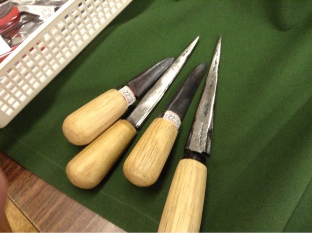 2014年12月07日 刃物の販売会してますよ! こんにちは、 チョットおひさしびりさんです。 今日は、屋外のイベントの他に 刃物の販売会やってます。 こんなのも販売してます。 竹細工に使うアレです。 今日だけの販売です。 つぎは、月末にも販売してもらう予定ですよ〜 是非、ご利用ください。 それと、 先週の大感謝祭で応募してもらった分の ハッピー抽選も開催しましたよ〜 20名の方に商品券のプレゼントが当たりました。 おめでとうございます。 タグ :#刃物#福島刃物#道の駅大津#大津町#熊本県#抽選会 「道の駅大津のこと♪」カテゴリの最新記事 < 前の記事次の記事 > コメント このブログにコメントするにはログインが必要です。 さんログアウト この記事には許可ユーザしかコメントができません。 コメントフォーム 名前 コメント 評価する リセット リセット 顔 星 投稿する 情報を記憶 トラックバック