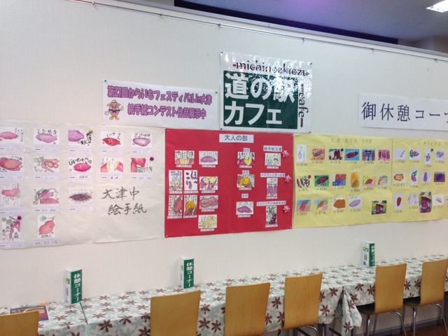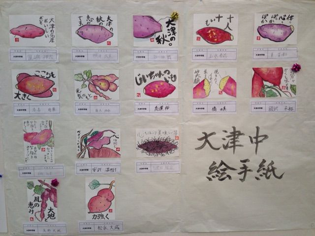 道の駅大津では、第27回からいもフェスティバルで募集した絵手紙を今日から展示してますよ〜。