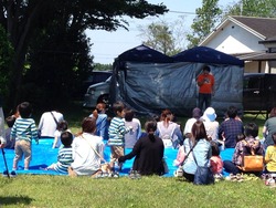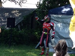 大津町のローカルヒーロー【グランパワーヒノクニ】のプチヒーローショーを開催しています。