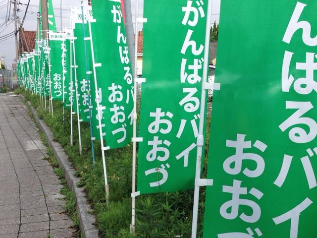 がんばるばいノボリを立てて皆様のお越しをお待ち申し上げております。
