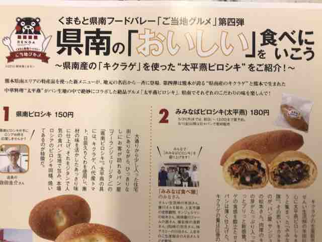 くまもと県南フードバレーより「太平燕ピロシキ」の企画のチラシが届きました。