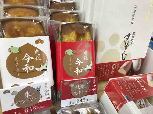 熊本銘菓すいぜんじ令和紅白バージョンと栗と林檎のパウンドケーキ