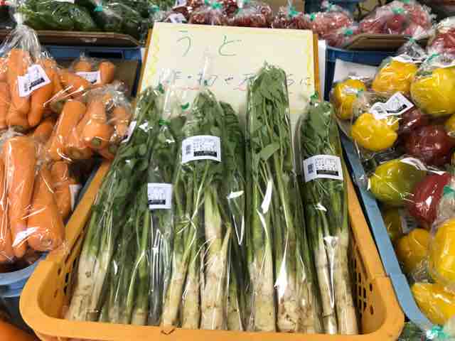 2019年04月28日 2019.04.28 「うど」が入荷しましたよ〜 ど〜もです。道の駅大津・野菜コーナーからです!季節のお野菜をご紹介!大津町産「うど」が今日は入荷しております。天ぷらや酢の物でいかがでしょうか?そのほか、ミニトマト・トマト・ピーマン・きゅうり・玉ねぎ・レタス・人参・水田ごぼう・ほうれん草・フルティカトマト・パプリカ・ネギ・にらなど入荷中です。100円から160円くらいの価格です。大津町特産の「からいも(サツマイモ)」も販売中です。そろそろ、食べ収めかも??? タグ :#うど#からいも#野菜コーナー カテゴリなしの他の記事 < 前の記事次の記事 > コメント このブログにコメントするにはログインが必要です。 さんログアウト この記事には許可ユーザしかコメントができません。 コメントフォーム 名前 コメント 評価する リセット リセット 顔 星 投稿する 情報を記憶