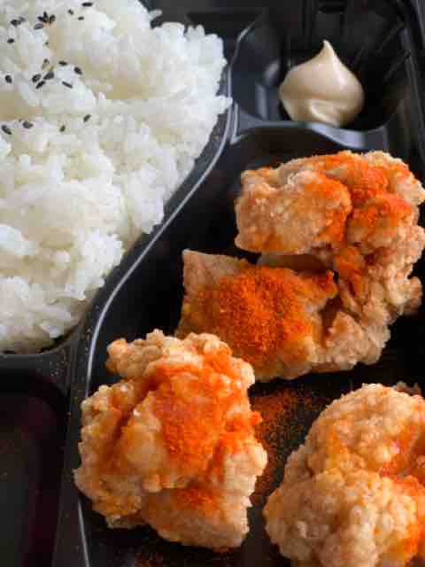 駐車場ショップからあげ職人のからあげ弁当チリ味400円