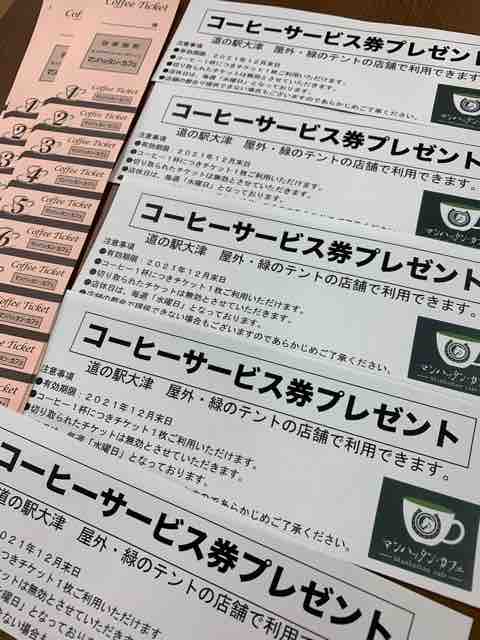 2021年10月03日 2021.10.03 SNS限定企画で〜す!!コーヒーチケットを配付していますよ〜 グッド芋〜ニング!10月になりましたね〜。お出かけしやすいシーズンです。皆様のお出かけを少しだけ贅沢に(笑)道の駅大津からSNS限定企画で〜す。工芸館のレジにてコーヒーチケットを配付していますよ〜。なんと、11杯分のコーヒーが無料です。レシートを持って工芸館のレジスタッフへお申し付けください。チケットをお渡ししています。400名さま限定の企画でこんな形の告知で申し訳ございませ〜ん!外で配っているコーヒーの豆は店内で購入可能です。野菜も入荷してま〜す タグ :#コーヒー カテゴリなしの他の記事 < 前の記事次の記事 >