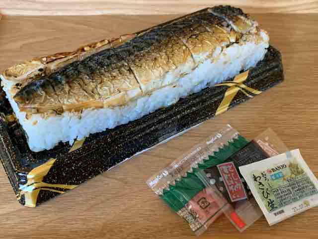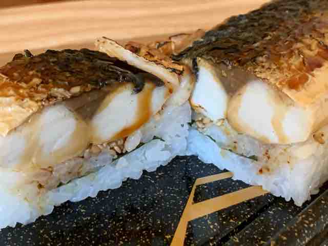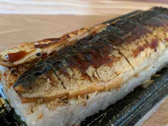 焼き鯖半身が酢飯の上に乗ってます。