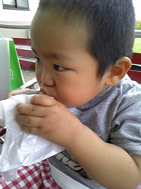 ちびっ子は、小さいサイズにがぶりついてました。